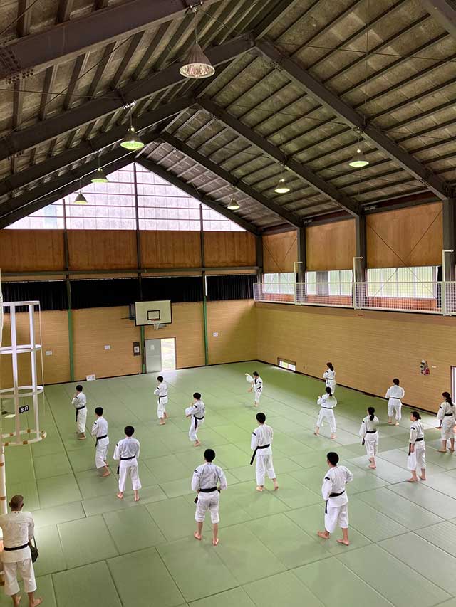 板や旅館から専用体育館までは約1.7km 2台の車(バン)で送迎しています。 |